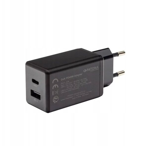 Φορτιστής PATONA Premium GaN PD45W 1xUSB-C 1xUSB-A PD3.0 QC3.0 μαύρος