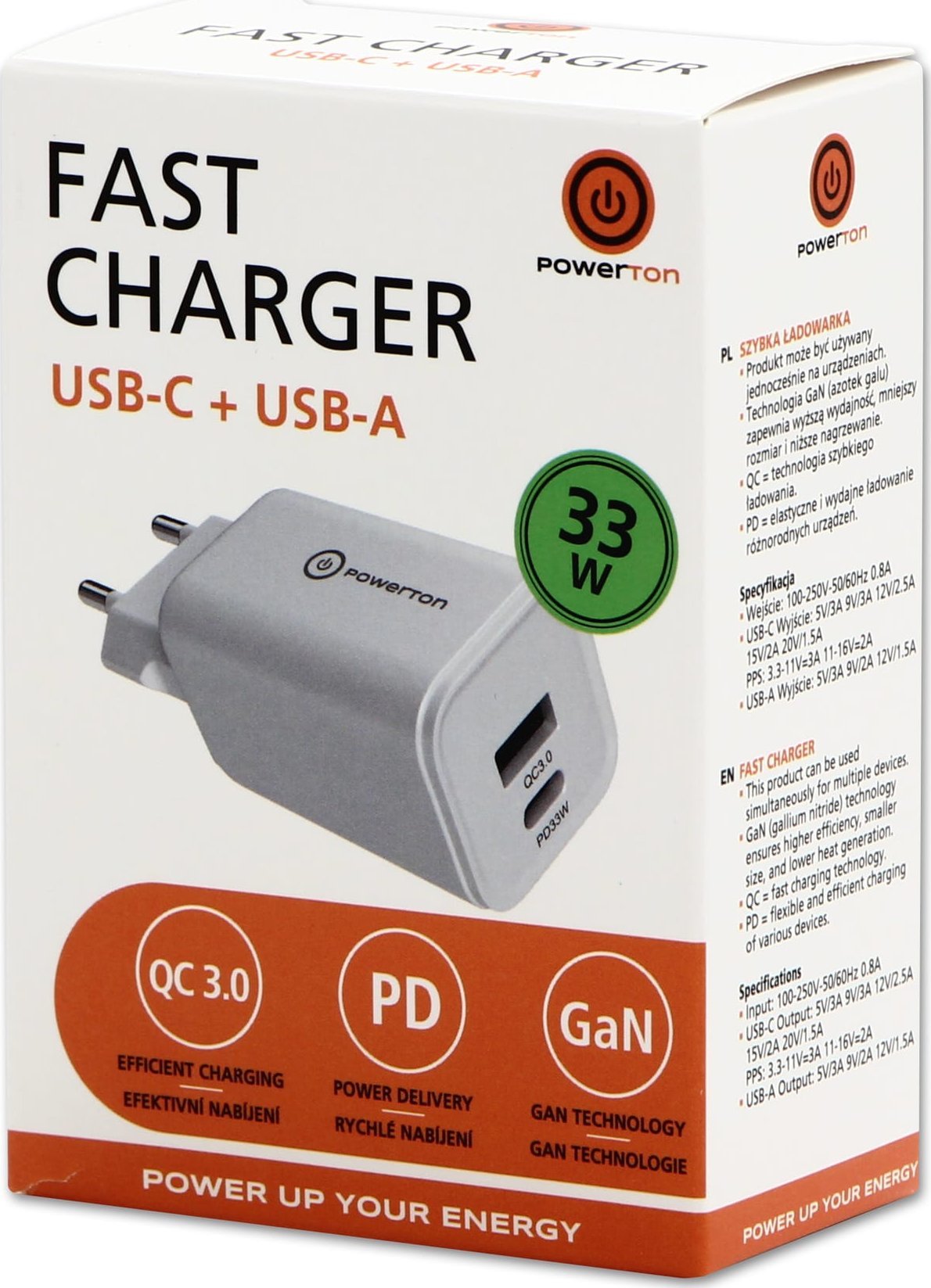 Powerton Τροφοδοτικό / προσαρμογέας δικτύου 33W, 2-θυρών, USB-C, USB-A