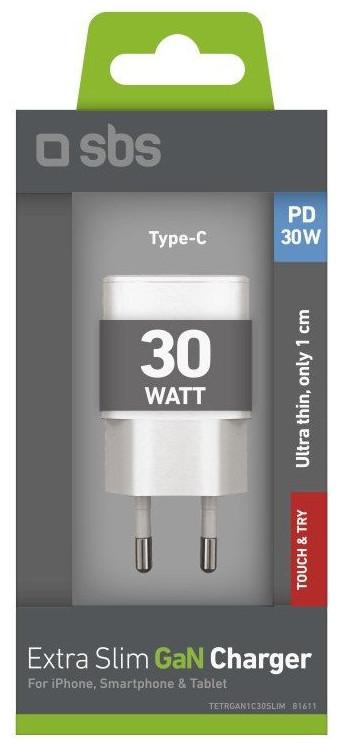Φορτιστής Ταξιδιού SBS PD UltraSlim 30W USB-C GaN λευκός