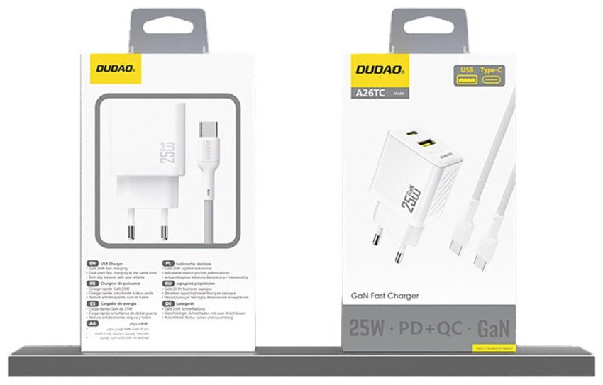 Ładowarka Dudao A26T GaN 25W USB-A, USB-C - biała