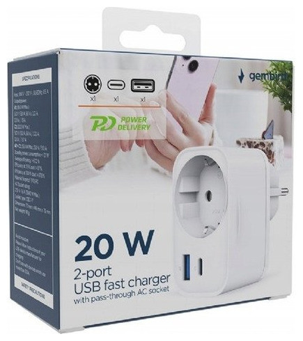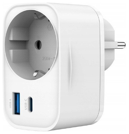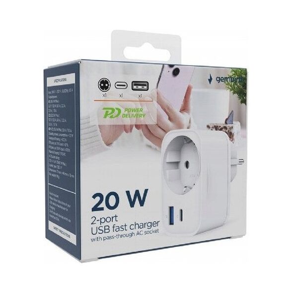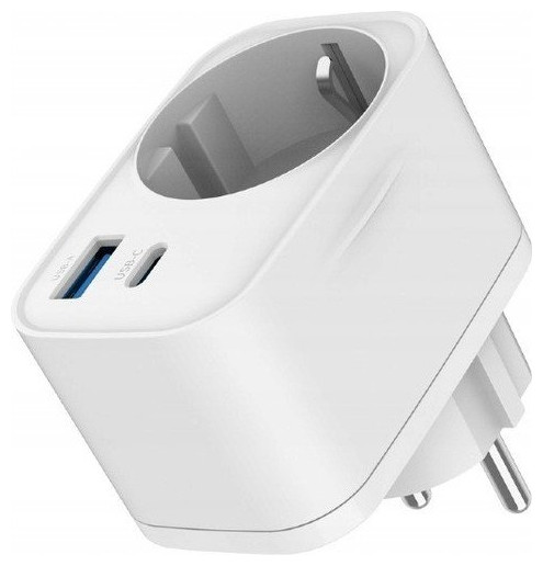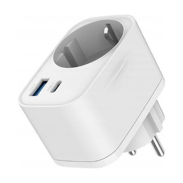 Γρήγορος φορτιστής USB 20W (USB-A + USB-C) με υποδοχή AC, PD 3.0 / QC 3.0 λευκός