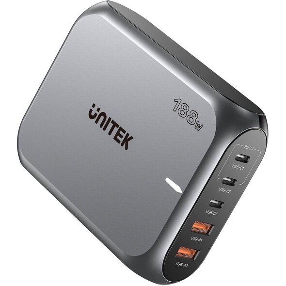 Γρήγορος φορτιστής τοίχου Unitek 2xUSB-A 3xUSB-C GAN 188W