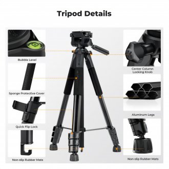 Statyw video K&F Concept S254A3 z głowicą BV01 i uchwytem na telefon - czarny