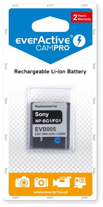 znamionowe napięcie ogniwa - 3.6V (kompatybilne z 3.7V)całkowity brak efektu pamięciogniwa litowo jonowe, najwyższej jakoścido 1000 cykli ładowania/rozładowaniawysoka pojemność - 1000mAhbateria zapakowana w blisterwymiary akumulatora - 42mm x 35mm x 8mm