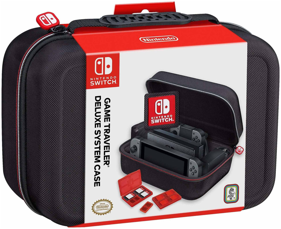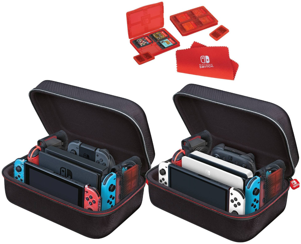 BIG BEN Switch Μεγάλη θήκη κονσόλας + αξεσουάρ Ολοκληρωμένη προστασία από ζημιές. Προστατεύει την κονσόλα σας και όλα τα αξεσουάρ: JoyCon, φορτιστή, τροφοδοτικό, παιχνίδια, κάρτες μνήμης. Μην ανησυχείτε, τώρα μπορείτε να πάρετε την αγαπημένη σας κονσόλα όπου θέλετε. Οργανώστε και προστατέψτε το σύστημα Nintendo Switch σε αυτήν την θήκη RDS Industries Game Traveler. Το ταξίδι με την κονσόλα σας δεν ήταν ποτέ τόσο ευχάριστο και άνετο. Η θήκη είναι συμβατή με τις κονσόλες Switch και Switch OLED. Άδεια προδιαγραφών: Η ανθεκτική και σκληρή θήκη Nintendo Nintendo Switch Deluxe καλύπτεται με βαλλιστικό νάιλον Τέλεια προστασία για την κονσόλα σας από τυχαίες πτώσεις ή χτυπήματα Εσωτερικό με επένδυση από αφρό κενού, κρατά την κονσόλα και τα παιχνίδια με ασφάλεια στη θέσηΘήκη που έχει σχεδιαστεί για να συγκρατεί ολόκληρο το σύστημα, συμπεριλαμβανομένων των καλωδίων και του επιπλέον Joy-set Μειονεκτήματα ή Pro ControllerΔύο επιπλέον κάδοι 8 παιχνιδιών και δύο κάδοι για 4 κάρτες SD Περιλαμβάνει πανί καθαρισμού Σίγουρα η καλύτερη προστασία ποιότητας για την κονσόλα Switch στην αγορά Περίπτωση {Type} . Περίπτωση {Type} . Περίπτωση {Type}