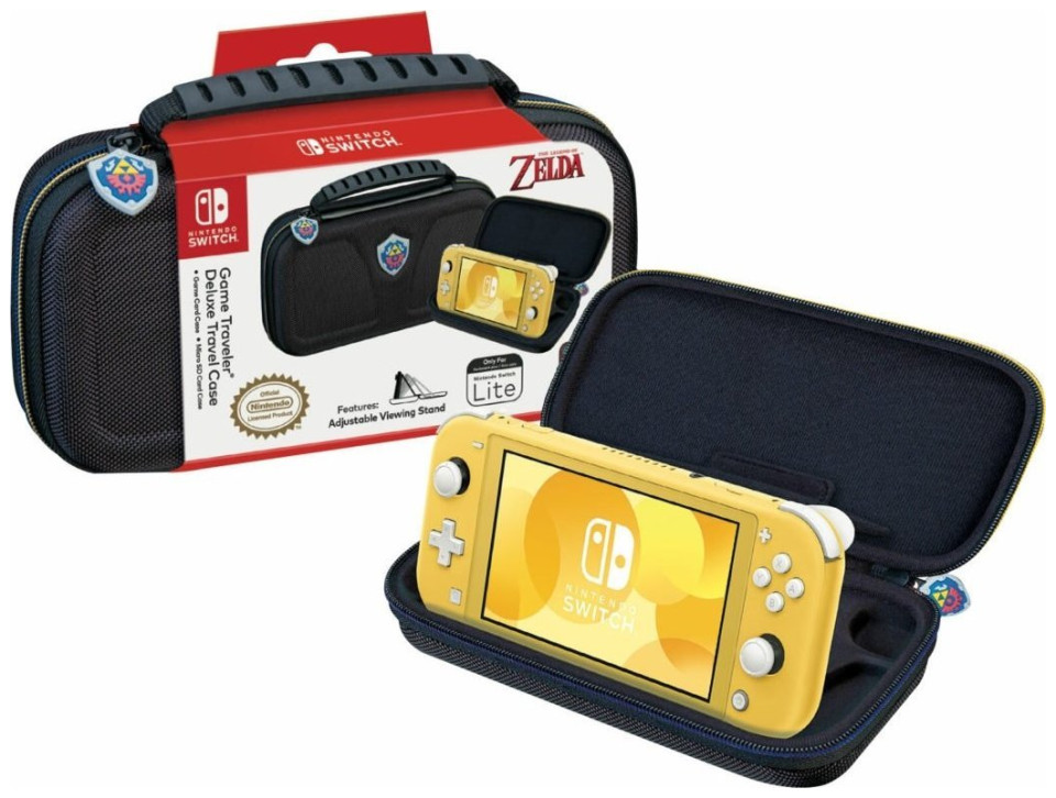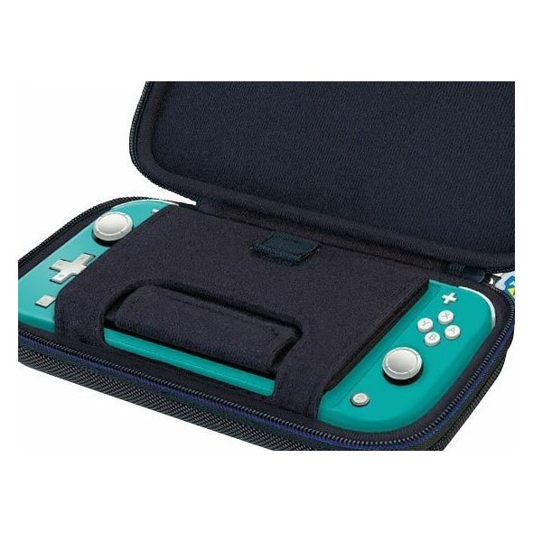 Θήκη κονσόλας BIG BEN Switch LITE ZELDA Μεταφέρετε την κονσόλα Switch και τα παιχνίδια σας με ασφάλεια σε μια κομψή θήκη με γραφικά Zelda. Άκαμπτο και κομψό, και πάνω από όλα ασφαλές, θα σας προσφέρει άνεση χρήσης και αποθήκευσης. Εστιάστε στο παιχνίδι και μην ανησυχείτε μήπως συμβεί κάτι στην κονσόλα σας ενώ ταξιδεύετε. Η θήκη λειτουργεί ως βάση προβολής Η σκληρή θήκη με μαλακή επένδυση προστατεύει την κονσόλα NINTENDO SWITCH ™ από γρατσουνιές και γδαρσίματα. Διαθέτει ρυθμιζόμενη βάση για την κονσόλα τύπου STAND θήκη για 2 κάρτες Micro SD Το εσωτερικό είναι επενδεδυμένο με αφρό κενού για να διατηρείται η κονσόλα με ασφάλεια στη θέση τους και η θήκη με επένδυση προστατεύει την οθόνη