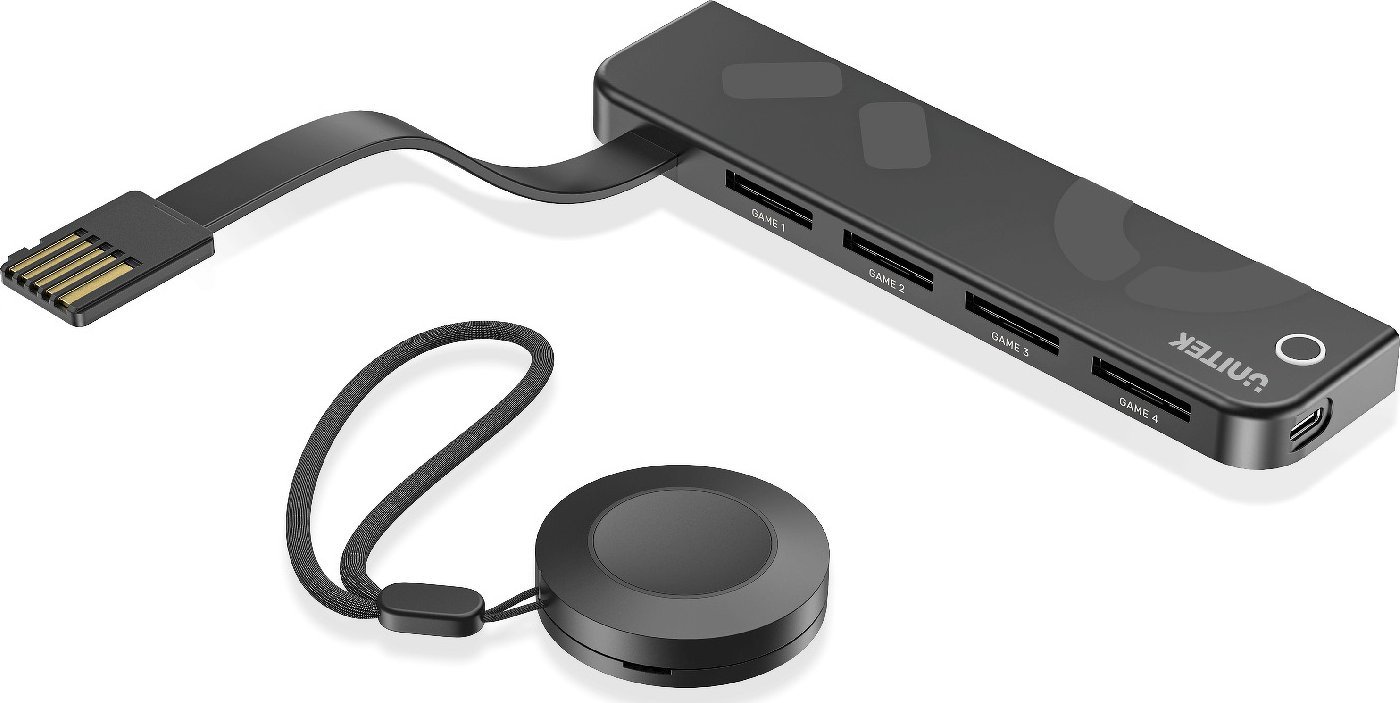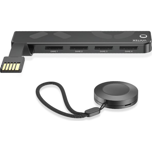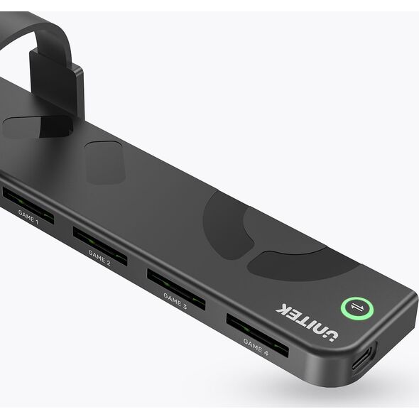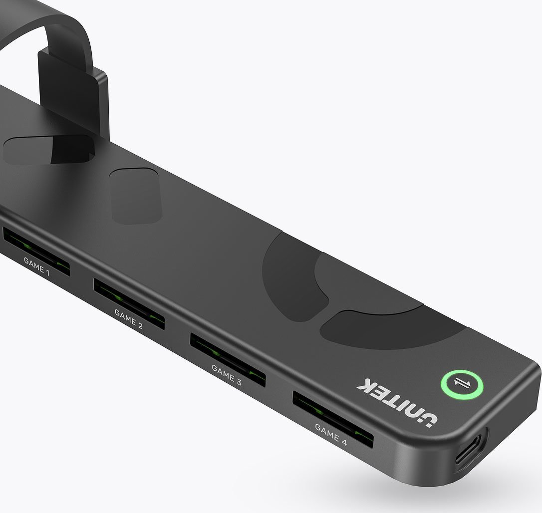 Jak podłączyć aż cztery kartridże z grami jednocześnie do konsoli Nintendo Switch? To proste – jedyne czego potrzebujesz to Unitek G1002E! To mały i lekki czytnik kart Nintendo z pilotem wyposażony w cztery sloty na kartridże do mobilnej konsoli Nintendo Switch. Montaż akcesorium na stacji dokującej jest niezwykle prosty i intuicyjny. Czteroslotowy czytnik Unitek G1002E jest jedynym tego rodzaju urządzeniem dostępnym na rynku.