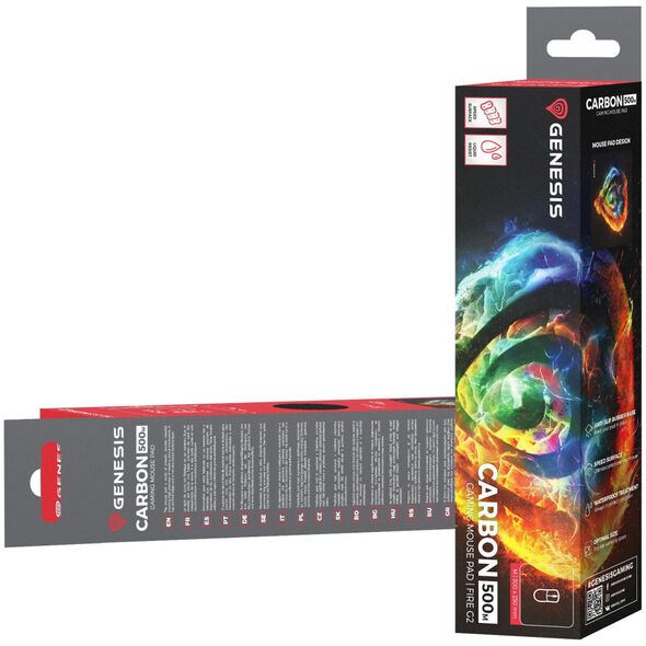 Genesis Carbon 500 M Fire G2 wyróżnia się specjalną impregnacją, która sprawia, że podkładka jest wodoodporna i nie wchłania wilgoci. Ułatwia to nie tylko czyszczenie jej powierzchni, ale daje też możliwość łatwego zebrania cieczy w momencie zalania powierzchni.