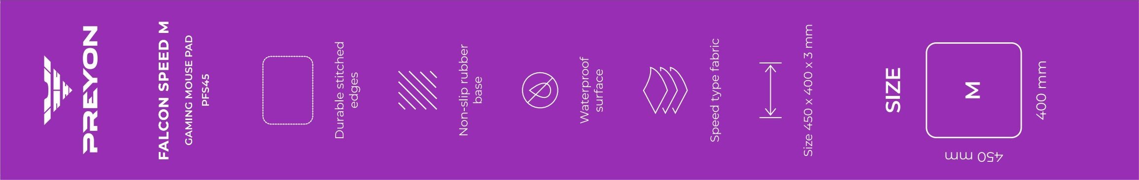 Rozmiar podkładki pod mysz należy dobrać pod swoje potrzeby. W rodzinie Falcon Speed odnajdziesz również wielkość XXL oraz XL. Każda z nich charakteryzuje się tymi samymi cechami, różnią je tylko wymiary, które mogą być dla Ciebie kluczowe.