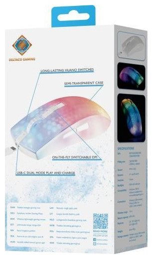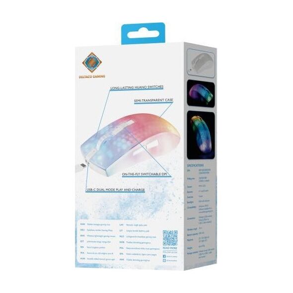 Ποντίκι Deltaco Ασύρματο ημιδιαφανές DELTACO GAMING ποντίκι, RGB, εξαιρετικά ελαφρύ, λευκό / GAM-145-W