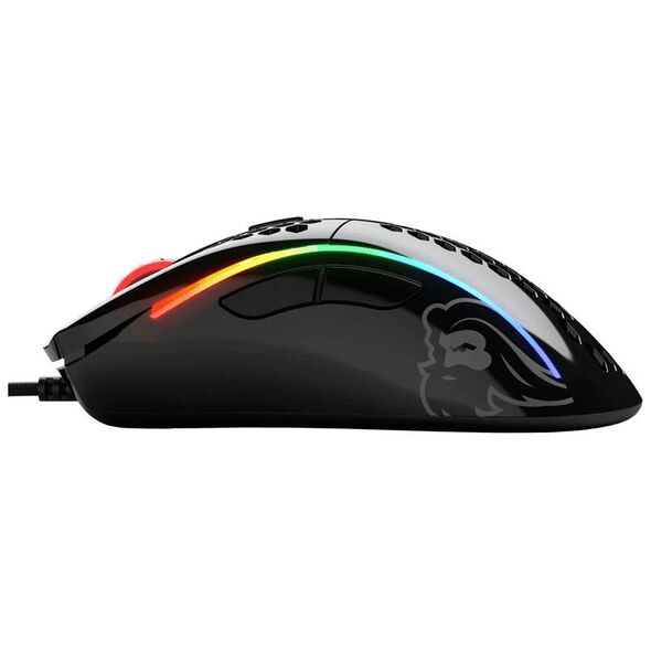 Glorious PC Gaming Race model D jest mysz do gier o wysokiej jakości czujnik optyczny z Pixart oraz sześć przycisków. Czujnik oferuje bardzo precyzyjną rozdzielczość 12 000 DPI . Góra z wzorem plastra miodu jest uderzająca. To znacznie zmniejsza wagę myszy do zaledwie 68 gramów. Poniżej znajduje się eleganckie oświetlenie RGB, które uwydatnia wewnętrzną mechanikę myszy. Trwałe przełączniki Omron w Glorious PC Gaming Race Model D zapewniają długą żywotność.