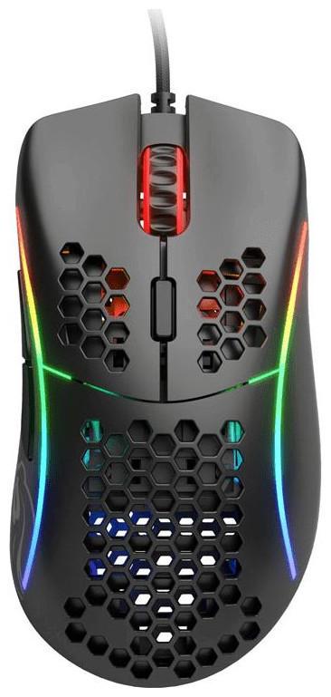 Το Glorious PC Gaming Race model D είναι ένα ποντίκι gaming με οπτικό αισθητήρα υψηλής ποιότητας από την Pixart και έξι κουμπιά. Ο αισθητήρας προσφέρει πολύ ακριβή ανάλυση 12.000 DPI. Το τοπ με μοτίβο κηρήθρας είναι εντυπωσιακό. Αυτό μειώνει σημαντικά το βάρος του ποντικιού σε μόλις 68 γραμμάρια. Παρακάτω είναι κομψός φωτισμός RGB που αναδεικνύει την εσωτερική μηχανική του ποντικιού. Οι ανθεκτικοί διακόπτες Omron στο Glorious PC Gaming Race Model D διασφαλίζουν μεγάλη διάρκεια ζωής.