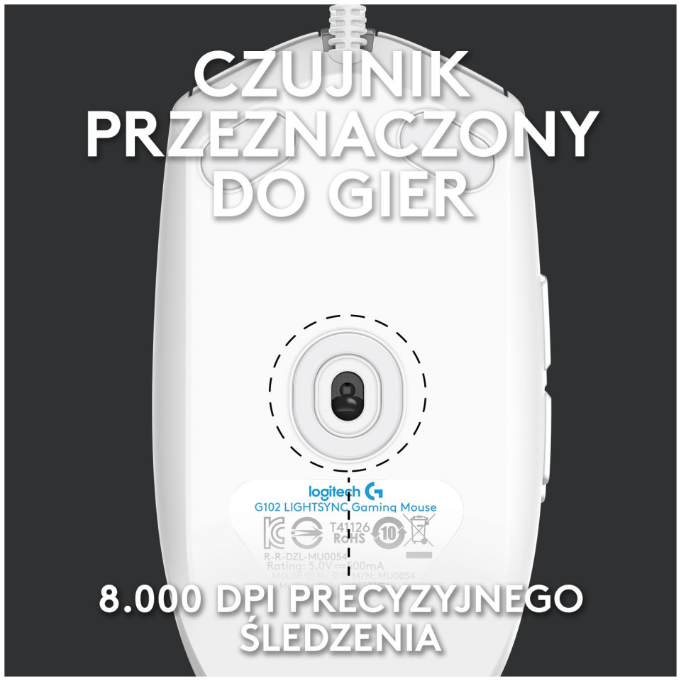 Ο αισθητήρας G102 μπορεί να έχει ευαισθησία έως και 8000 DPI (κουκκίδες ανά ίντσα). Το G102 κάνει την επιλογή των ρυθμίσεων ευαισθησίας τόσο εύκολη όσο η κύλιση με μια μπάρα. Ρυθμίστε έως και 5 επίπεδα και εναλλάξτε μεταξύ τους με ένα κουμπί. Αυτό είναι εξαιρετικό για παιχνίδια που έχουν διαφορετικούς τρόπους ή επίπεδα που μπορεί να απαιτούν περισσότερο έλεγχο, όπως ένα πεδίο σκοπευτή ή ένα επίπεδο γρήγορου κλικ.