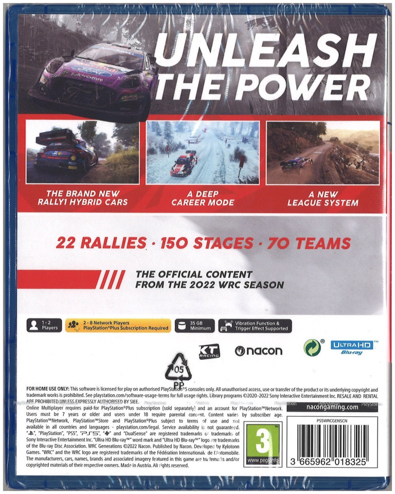 WRC Generations (PS5) Ημερομηνία κυκλοφορίας: 2022-11-03 Έκδοση: Boxed Βαθμολογία PEGI: PEGI 3 Έκδοση γλώσσας: Πολωνικά (υπότιτλοι) Έκδοση γλώσσας εξωφύλλου: Αγγλικά Αντιμετωπίστε τις προκλήσεις στην πιο εκτεταμένη, ρεαλιστική και απαιτητική προσομοίωση ράλι που δημιουργήθηκε ποτέ. Γίνετε στο επίκεντρο της δράσης και οδηγήστε τα αυτοκίνητα WRC του 2022, ειδικά τα νέα υβριδικά μοντέλα. Στη σεζόν του 2022, η σειρά WRC εισέρχεται στην υβριδική εποχή. Αυτή είναι μια πραγματική επανάσταση στον κόσμο των ράλι, η οποία θα έχει τεράστιο αντίκτυπο στις επιδόσεις, καθιστώντας αναγκαία μια αλλαγή στρατηγικής και αναγκάζοντας τους οδηγούς και τις ομάδες να προσαρμοστούν στις νέες συνθήκες. Όσον αφορά το gameplay, έχουν εισαχθεί νέοι μηχανισμοί που αντανακλούν τις απαιτήσεις των υβριδικών κινητήρων. Για να κερδίσετε, θα χρειαστεί να διαχειριστείτε τη μπαταρία σας με σύνεση αλλάζοντας τη χαρτογράφηση του κινητήρα ανάλογα με την ειδική διαδρομή που καλύπτετε. Η ικανοποίηση της κοινότητας των παιχνιδιών έχει επίσης ληφθεί μέριμνα - από εδώ και πέρα, μπορείτε να μοιράζεστε τους δικούς σας πίνακες και αυτοκόλλητα με άλλους χρήστες. Τα καλύτερα έργα βραβεύονται και αναγνωρίζονται. Για τους ανταγωνιστικούς οπαδούς, έχουμε μια νέα λειτουργία Leagues όπου μπορείτε να προκαλέσετε διαδικτυακούς αντιπάλους παρόμοιου επιπέδου δεξιοτήτων. Για να προχωρήσετε στον πίνακα της κατηγορίας Legend, πρέπει να φτάσετε στη γραμμή τερματισμού μπροστά από τους αντιπάλους σας. Το WRC Generations έχει να προσφέρει περισσότερα από οποιοδήποτε άλλο παιχνίδι ράλι στο παρελθόν. • 750 km μοναδικών ειδικών διαδρομών σε 22 χώρες • 49 ομάδες από τη σεζόν 2022 (Rally1 / Rally2 / Junior WRC) • 37 θρυλικά αυτοκίνητα και μπόνους οχήματα • 165 χρονομετρήσεις σε ειδικές διαδρομές Για να γίνει ο ανταγωνισμός στο πρωτάθλημα ακόμα πιο ρεαλιστικός, το Ράλι Η Σουηδία έχει επανασχεδιαστεί πλήρως, η οποία περιλαμβάνει πλέον 6 νέες ειδικές διαδρομές στην περιοχή Umea. Νέα στοιχεία: • Νέα υβριδικά αυτοκίνητα • Νέα, ακόμα πιο ρεαλιστική φυσική των οχημάτων • ΠΟΛΥΤΥΧΙΑ στα οποία μπορείτε να προκαλέσετε άλλους παίκτες • Νέο σκηνικό του Ράλι Σουηδίας και 6 νέες ειδικές διαδρομές • Κοινή χρήση ζωντανών και αυτοκόλλητων στην κοινότητα • Δημιουργία και διαχείριση ομάδας{Genre} Racing . {Genre} Racing . {Genre} Racing . {Genre} Racing . {Genre} Racing . {PEGI Rating} +3 . {PEGI Rating} +3 . {PEGI Rating} +3 . {PEGI Rating} +3 . {PEGI Rating} +3 . {Παιχνίδι Playstation} 5 . {Παιχνίδι Playstation} 5 . {Παιχνίδι Playstation} 5 . {Παιχνίδι Playstation} 5 . {Παιχνίδι Playstation} 5 . {Μετεγγραφή} Αγγλικά . {Μετεγγραφή} Αγγλικά . {Μετεγγραφή} Αγγλικά . {Μετεγγραφή} Αγγλικά . {Μετεγγραφή} Αγγλικά . {PEGI Description} Δεν υπάρχει διαθέσιμη περιγραφή. {PEGI Description} Δεν υπάρχει διαθέσιμη περιγραφή. {PEGI Description} Δεν υπάρχει διαθέσιμη περιγραφή. {PEGI Description} Δεν υπάρχει διαθέσιμη περιγραφή. {PEGI Description} Δεν υπάρχει διαθέσιμη περιγραφή. {Γλώσσα παιχνιδιού} Πολωνικά (υπότιτλοι). {Γλώσσα παιχνιδιού} Πολωνικά (υπότιτλοι). {Γλώσσα παιχνιδιού} Πολωνικά (υπότιτλοι). {Γλώσσα παιχνιδιού} Πολωνικά (υπότιτλοι). {Game language} Πολωνικά (υπότιτλοι)