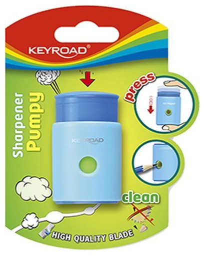PUMPY-UP PLASTIC SHORPENER AKEYROAD SINGLE BLISTER - MIX OF COLORS από πλαστικό, ατσάλινα λεπίδες που προορίζονται για τρόχισμα μολυβιών και κηρομπογιές.{Αριθμός οπών} 1 . {Δοχείο απορριμμάτων} Ναι. {Κυρίαρχο χρώμα} Επιλέχτηκε τυχαία. {Type} Κανονικό