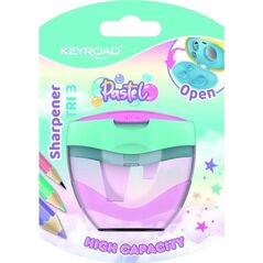 Ξύστρα πλαστική Keyroad, παστέλ, τριπλή, με δοχείο, blister, mix χρωμάτων