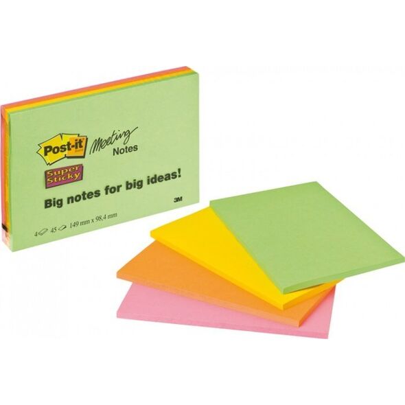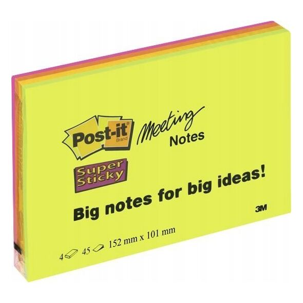 3M 3M 6445-4SS, Rectangle, Green, Orange, Pink, Yellow, Paper, 149 mm, 98 mm, 45 sheets