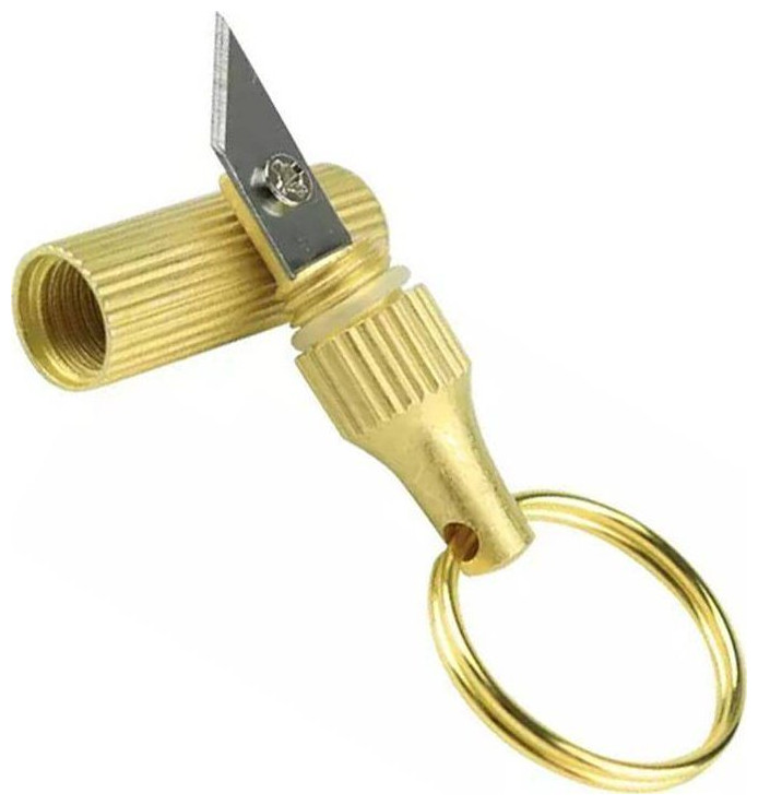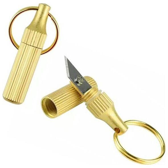 Kompaktowy nożyk do otwierania paczek i kopert. Zamknięty w wygodnej formie breloczka oraz nasadki zabezpieczającej ostrze. Możliwość wygodnego przyczepienia do paska lub innych kluczy (załączone w zestawie kółeczko).Cechy i specyfikacja produktu:Kompaktowy nożyk do otwierania paczek i kopert. Zamknięty w wygodnej formie breloczka oraz nasadki zabezpieczającej ostrze. Możliwość wygodnego przyczepienia do paska lub innych kluczy (załączone w zestawie kółeczko). Materiał: stal nierdzewna + mosiądz Długość: 28 mm Długość ostrza: 9 mm Średnica: 9 mm Kolor: złoty Opakowanie: foliowe