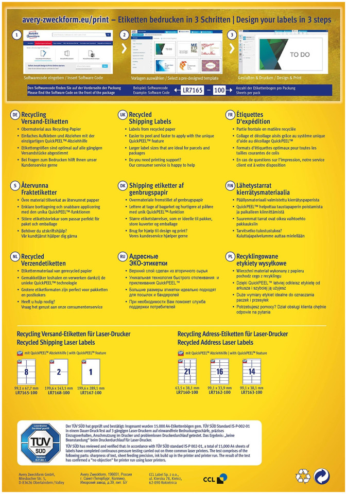 AVERY Avery QuickPEEL, Λευκό, A4, 99,1 mm, 67,7 mm, 800 pc(s), 100 φύλλαAVERY Avery QuickPEEL, Λευκό, A4, 99,1 mm, 67,7 mm, 800 pc(s), 100 φύλλα