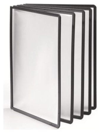 Panel informacyjny A4 SHERPA obramowanie wykonane z polipropylenu antyrefleksyjna, groszkowo-matowa folia umożliwia bezpośrednie skanowanie dokumentów w ramce indeksy do zaczepiania na bocznej lub górnej krawędzi, z możliwością przesuwania Opakowanie 5szt. Kolor ramki czarny Cena za 1 szt