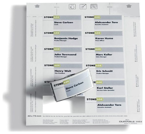 Φύλλα BADGEMAKER για την περιγραφή σημάτων Ανθεκτικά φύλλα A4 Εύκολη περιγραφή με χρήση λέιζερ, inkjet, εκτυπωτή κουκκίδων και φωτοτυπικό μηχάνημα Τα φύλλα έχουν μικροδιάτρηση για διευκόλυνση του διαχωρισμού τους. στον ιστότοπο duraprint.pl Διαστάσεις ετικετών: 40x75 mm 1453 02 "Αριθμός προσφοράς xSale DU798.Αναγνωριστικά {Type}