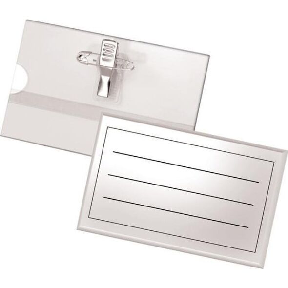 Αναγνωριστικό από διαφανές, άκαμπτο υλικό. Εξοπλισμένο με κούμπωμα με κλιπ και παραμάνα. Συσκευασία: κουτί 50 τεμαχίωνΑναγνωριστικά {Type}