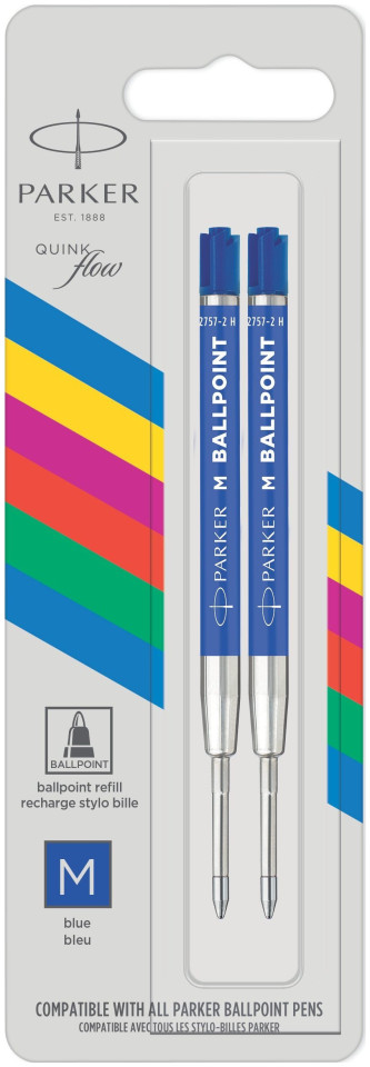 Parker Quinkflow. Kolory długopisu: Niebieski, Rozmiar linii: Średni, Kolor produktu: Niebieski, Stal nierdzewna. Ilość na paczkę: 2 szt.