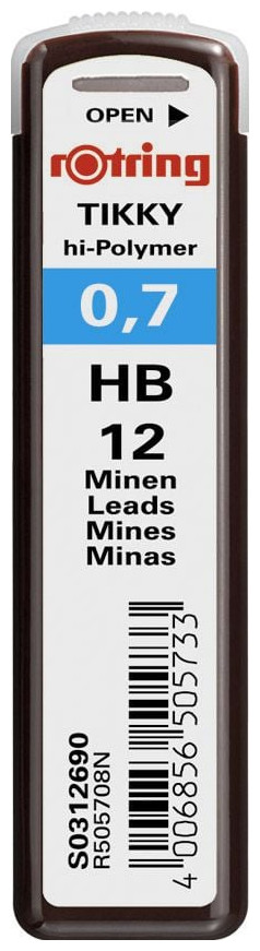 Ανθεκτικές γραφίδες πολυμερούς γραφίτη Πάχος 0,7mm Σκληρότητα: HB Αριθμός τεμαχίων στη συσκευασία: 12 {Χρώμα} Μαύρο. {Type} Ανταλλακτικά μολυβιών . {Αριθμός τεμαχίων} 12 τεμ.