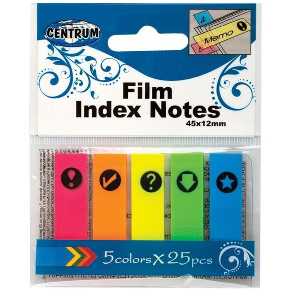 Καρτέλες ευρετηρίου, μέγεθος 45x12 mm, 25 φύλλα, 5 χρώματα νέονΚαρτέλες ευρετηρίου {Type}
