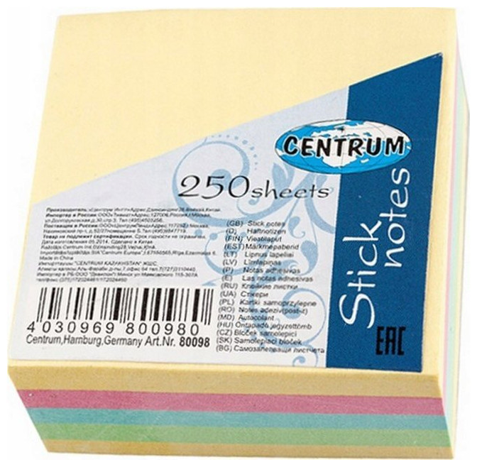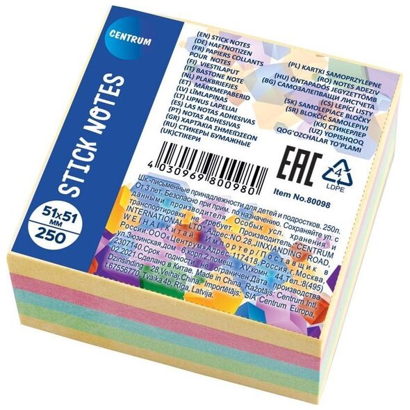 Μέγεθος: 51x51 mm Αριθμός φύλλων χαρτιού: 1x250 Περιγραφή προϊόντος 250 κομμάτια χαρτιού σε ένα μπλοκ. Διαστάσεις: 51x51 mm. Κόλλα που σας επιτρέπει να κολλήσετε και να ξεκολλήσετε ένα μόνο κομμάτι χαρτί πολλές φορές. Μονάδα πωλήσεων: 1 μπλοκ. Η CENTRUM είναι μια επωνυμία γερμανικών σχολικών και ειδών γραφείου. Η εταιρεία προσφέρει ενδιαφέροντα και σχετικά είδη γραφείου και δημιουργικά προϊόντα για πάνω από 15 χρόνια. Παραδίδει προϊόντα σε 32 χώρες. Όλα τα προϊόντα CENTRUM είναι υψηλής ποιότητας και προσιτές τιμές. Η γκάμα περιλαμβάνει περίπου 900 είδη και συνεχώς επεκτείνεται.Σημειώσεις {Type} . Σημειώσεις {Type} . Σημειώσεις {Type}