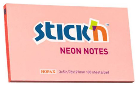 Κλασικό αυτοκόλλητο σημειωματάριο. περιέχει 100 φύλλα. μέγεθος: 76 x 127 mm; χρώμα: ροζ νέον.Σημειώσεις {Type}