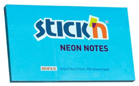 Κλασικό αυτοκόλλητο σημειωματάριο. περιέχει 100 φύλλα. μέγεθος: 76 x 127 mm; χρώμα: μπλε νέον.Σημειώσεις {Type}