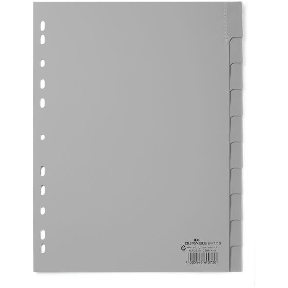 Durable DURABLE Μπλάνκο-Μητρώο PP μπλάνκο Καρτέλες 10-μέρη γκρι