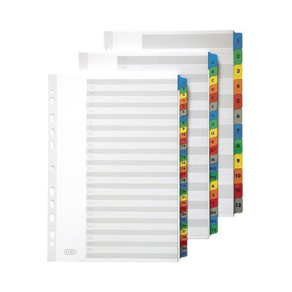 Από χοντρό λευκό χαρτόνι 160 g/m2; έγχρωμοι δείκτες ενισχυμένοι με πλαστικοποίηση. η γενική διάτρηση σας επιτρέπει να χρησιμοποιήσετε το διαχωριστικό σε οποιοδήποτε συνδετικό υλικό. περιλαμβάνεται πρόσθετες πληροφορίες και σελίδα περιγραφής. Μορφή Α4. 1-31.{Format} A4