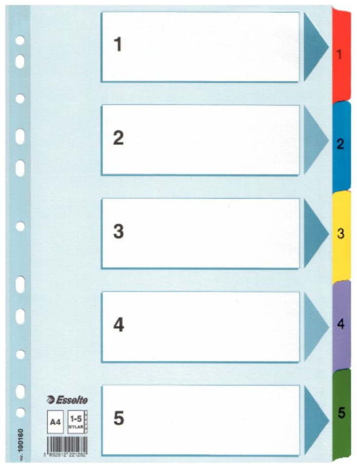 Μορφή A4, Έγχρωμα ευρετήρια ενισχυμένα με φύλλο MYLAR (σε 5 χρώματα Για αρχειοθέτηση εγγράφων A4) Αριθμητική εκτύπωση στα ευρετήρια με αλουμινόχαρτο πολλαπλών διάτρητων - ταιριάζει σε κάθε συνδετικό υλικό.{Format} A4