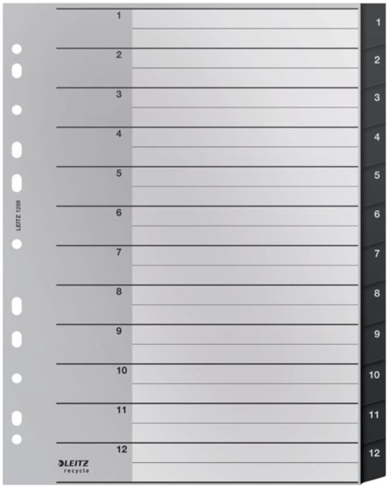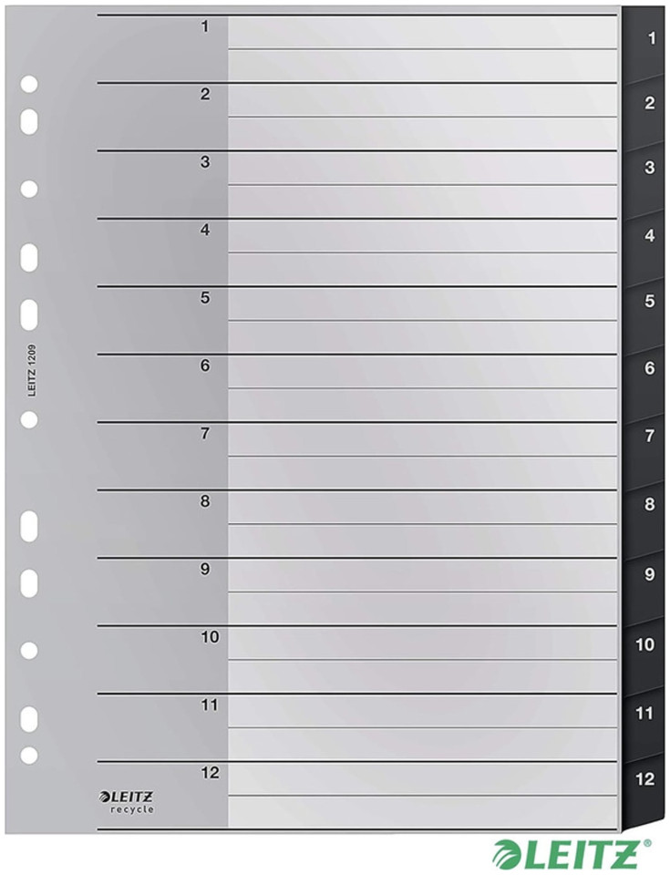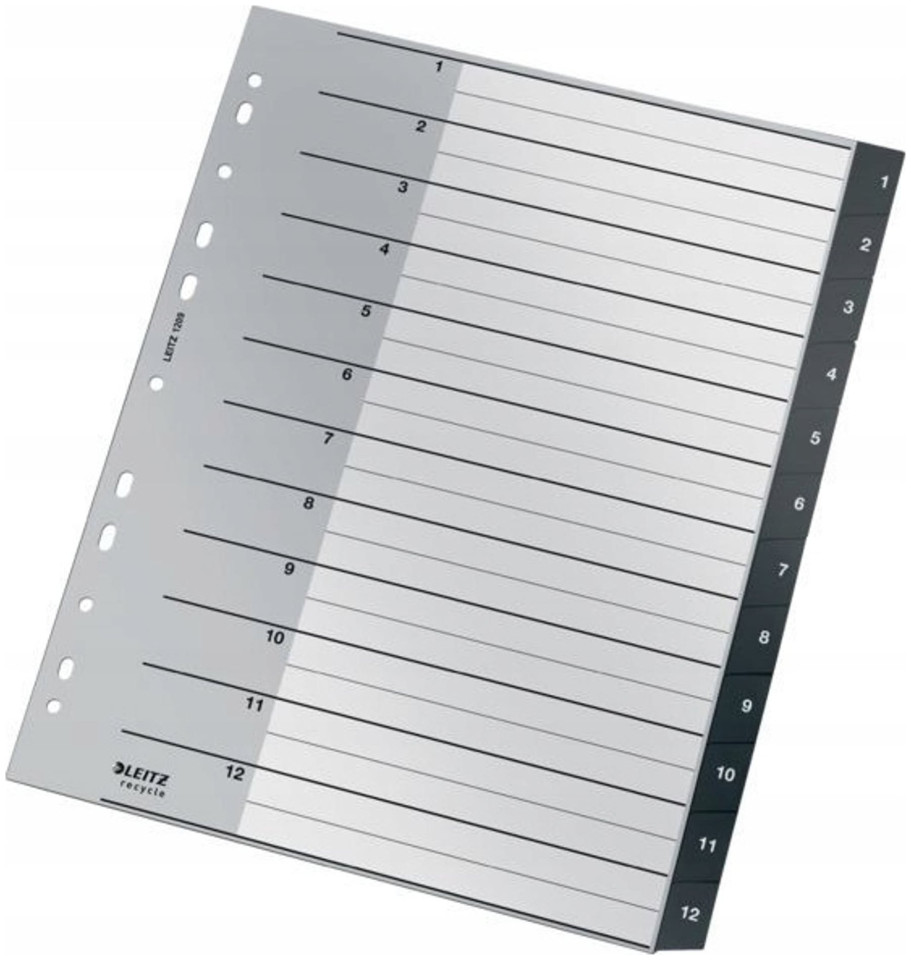 Διαχωριστικά PP Leitz Recycle A4 Maxi 1-12 μαύρα
