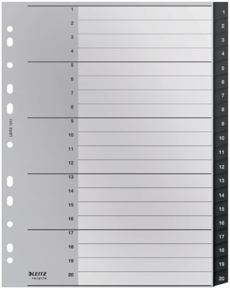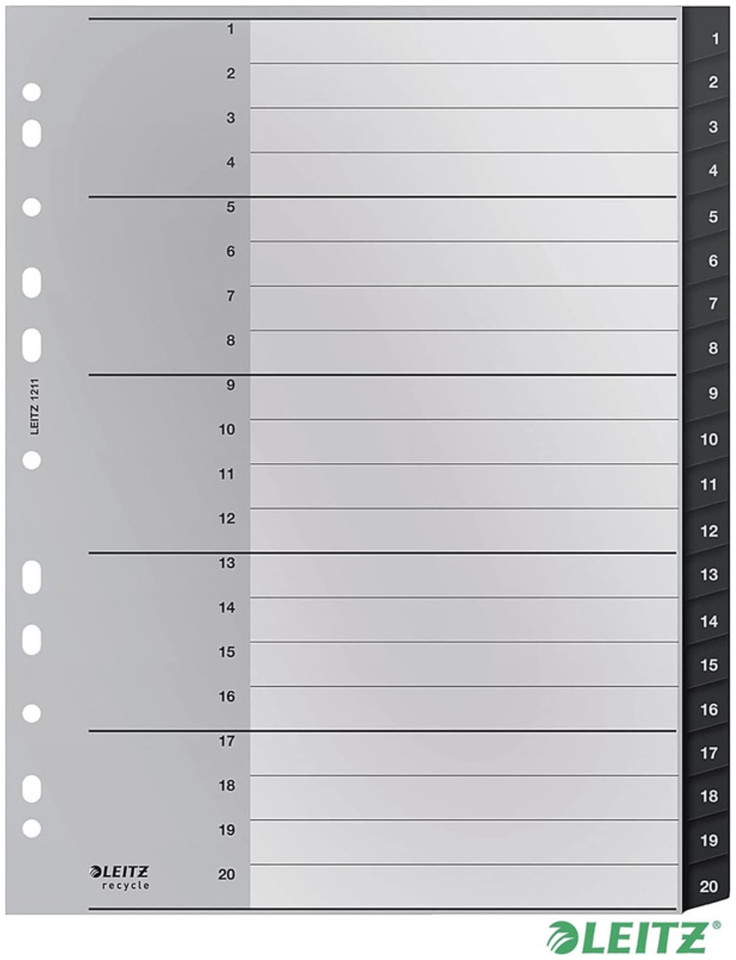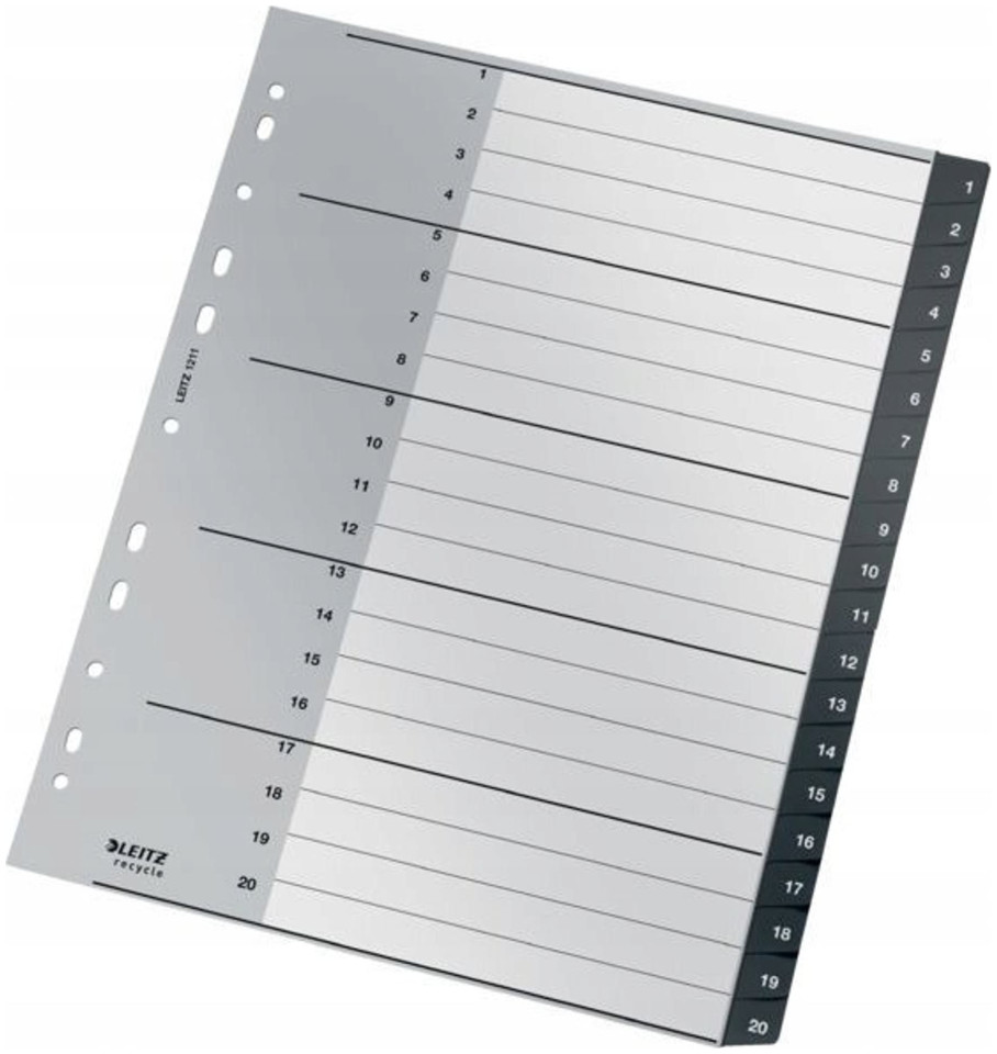 Διαχωριστικά PP LEITZ Recycle A4 Maxi 1-20 μαύρα