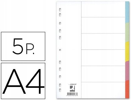 Διαχωριστικά Q-CONNECT, χαρτόνι, A4, 223x297mm, 5 φύλλα, μίξη χρωμάτων
