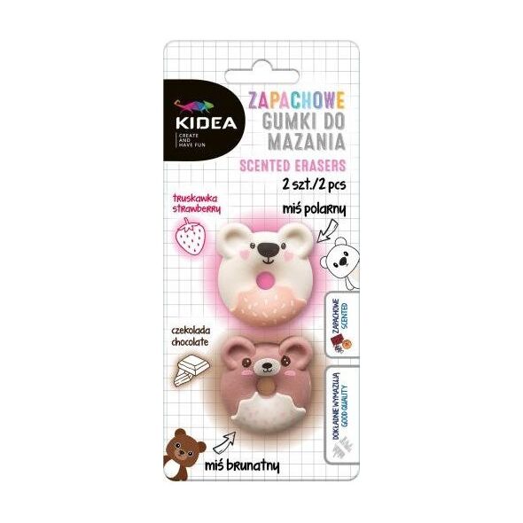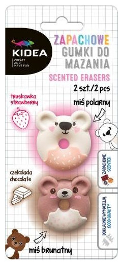 Ένα σετ από δύο αρωματικές γόμες θα ενθουσιάσει τους πάντες! Περιέχει μια γοητευτική γόμα "πολική αρκούδα" με άρωμα ζουμερής φράουλας και μια γόμα "καφέ αρκούδα" με άρωμα γλυκιάς σοκολάτας. Διαγράφουν και διορθώνουν τέλεια τα σχέδια, χωρίς να καταστρέφουν το χαρτί ή να λερώνουν.{Kind} με μολύβι . {Αριθμός τεμαχίων στη συσκευασία} 2