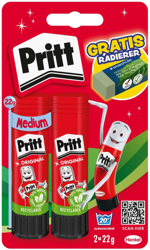 Pritt Κόλλα Στικ 2*22g + Γόμα λιανικής