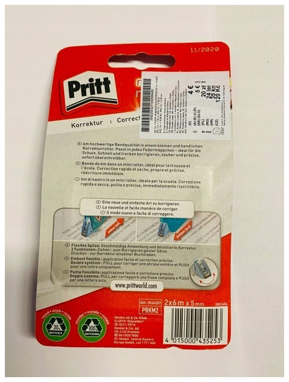 Pritt Pritt Διορθωτική Ταινία Micro, Πλάτος 5 mm, Μήκος 6 m, 2 Τεμάχια
