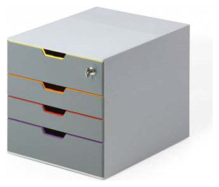 Δοχείο με πολύχρωμα συρτάρια. ελκυστικό και καινοτόμο σχέδιο. Τα πολύχρωμα περιγράμματα των συρταριών διευκολύνουν την οργάνωση των εγγράφων. Τα συρτάρια βγαίνουν εύκολα και σταθερά, έχουν ένα στοπ που τα εμποδίζει να τραβηχτούν εντελώς έξω κατά λάθος. προσαρμοσμένο σε έγγραφα A4 και C4. το σετ περιλαμβάνει εφαρμοσμένα ευρετήρια με δυνατότητα περιγραφής υπολογιστή. αντιολισθητικά πόδια στο κάτω μέρος του δοχείου. διαστάσεις: 280 x 292 x 356 mm (ύψος x πλάτος x βάθος); 4 συρτάρια. κλειδί{Type} Δοχεία με συρτάρια. {Χρώμα} Γκρι