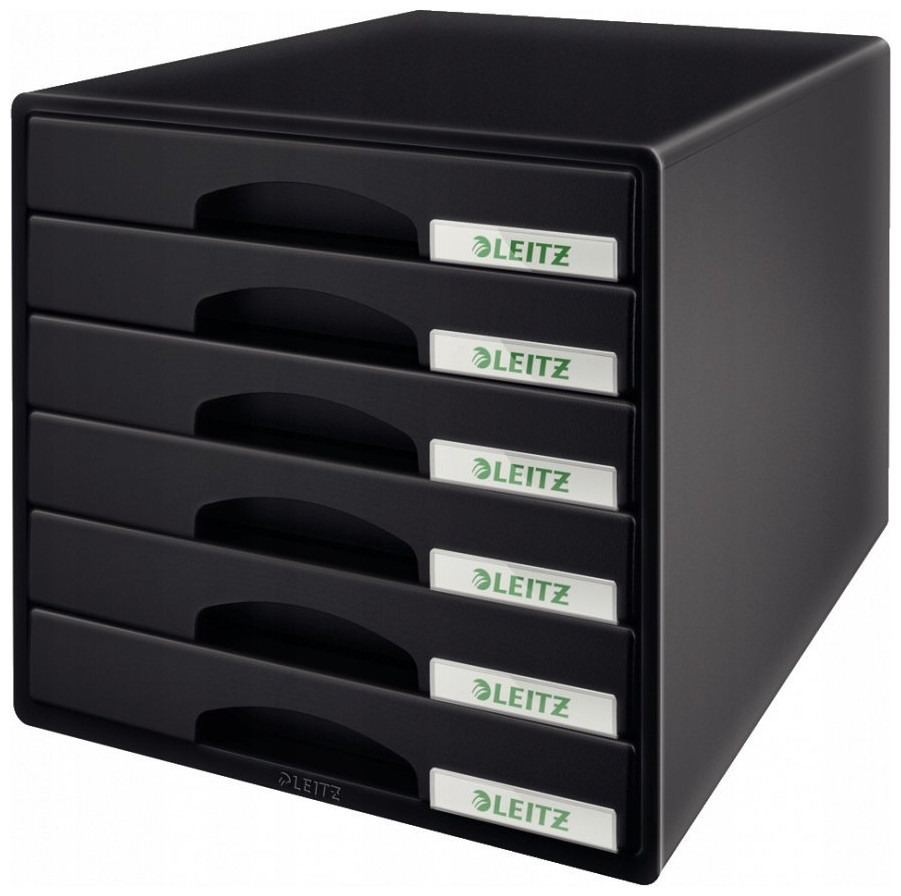 LEITZ Schubladenbox Plus, 6 συρτάρια, μαύρο για μέγεθος DIN A4 Maxi, συρτάρια με στοπ εξαγωγής, - 1 τεμάχιο (5212-00-95)