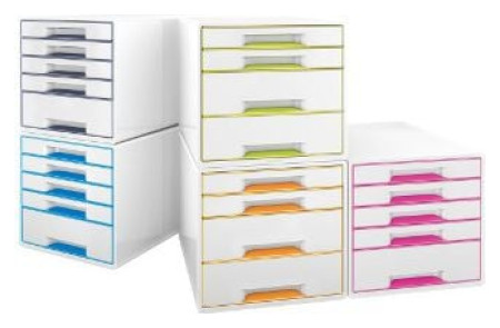 przykuwające wzrok, najwyższej jakości pojemniki z szufladami WOW, niezwykłe i stylowe połączenie dwóch kolorów o błyszczącym wykończeniu, doskonale pasuje do pozostałych produktów z kolekcji Leitz WOW, 4 małe szuflady do przechowywania dokumentów i przyborów biurowych oraz 1 duża szuflada do wszelkiego rodzaju akcesoriów np. zszywaczy, telefonów itp., Szuflady wysuwają się w łatwy sposób i posiadają blokadę zabezpieczającą przed całkowitym ich wysunięciem, unikalny system zamykania szuflad, wystarczy lekko popchnąć, a szuflada sama się zamknie, w zestawie biały marker, przezroczyste etykiety do zapisu, które ułatwią wyszukiwanie zawartości szuflad oraz przezroczysty organizer dla wygodnego przechowywania małych przedmiotów, np. długopisów, spinaczy itp., antypoślizgowe, gumowe nóżki, pojemniki można ustawiać jeden na drugim (maksymalnie trzy), wymiary: 287x270x363mm, waga (kg): 3,59.
