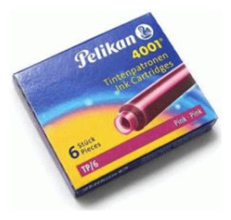 κοντά δοχεία μελάνης TP/5 Pelikan 4001, τυπικά δοχεία μελάνης για στυλό, η συσκευασία περιέχει 6 δοχεία μελάνης TG/6, ροζ{Type} Κοντές κασέτες. {Color}Ροζ . {Ποσότητα} 6 τεμ.