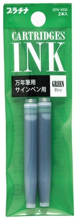 Naboje atramentowe Japońskiej marki PLATINUM. Naboje atramentowe dedykowane są do piór wiecznych Platinum i Nakaya. Posiadają one specjalną stalową kuleczkę, której zadaniem jest mieszanie atramentu. Opakowanie zawiera dwie sztuki naboju o pojemności 1,2 ml. Wyprodukowano w Japonii. Kolor zielony. EAN: 4977114940224