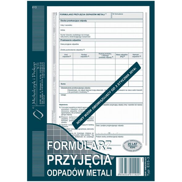 Michalczyk & Prokop Έντυπο παραλαβής μεταλλικών αποβλήτων E03-3