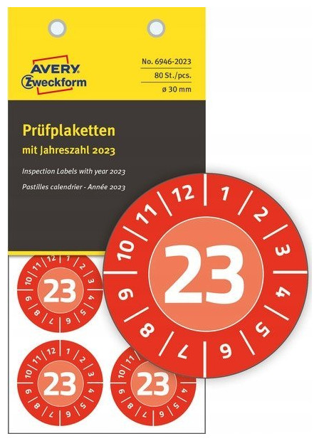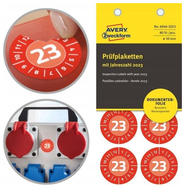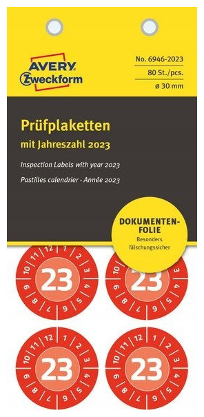 AVERY Avery 6946-2023, Red, Round, Permanent, White on red, Vinyl, 3 cm