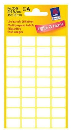 Λευκές μίνι ετικέτες για σήμανση στο χέρι. 216 ετικέτες ανά συσκευασία. Διαστάσεις 18 x 12 mm.{Type} Ορθογώνιες ετικέτες . {Χρώμα} Λευκό