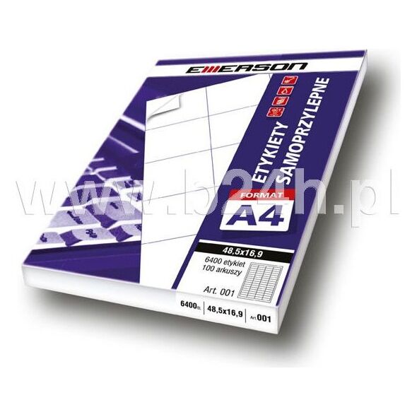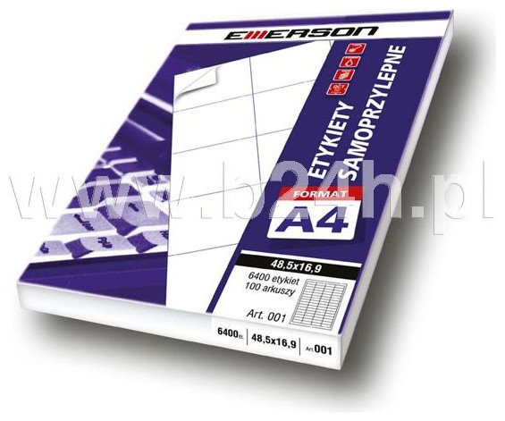 Οι αυτοκόλλητες ετικέτες παραδίδονται σε φύλλα Α4, λειτουργούν με όλους τους τύπους εκτυπωτών dot matrix και inkjet και με τους περισσότερους εκτυπωτές λέιζερ, η συσκευασία ετικετών περιέχει 100 φύλλα Α4{Type} Ορθογώνιες ετικέτες . {Χρώμα} Λευκό